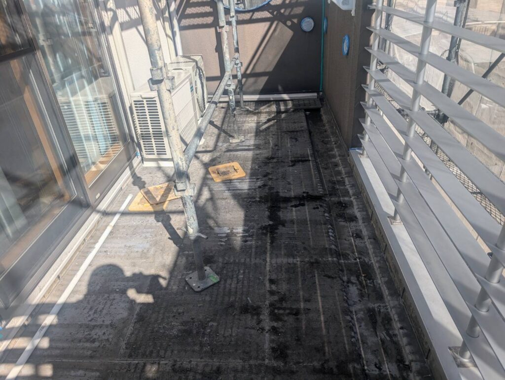 ベランダ床にウレアックスHG専用プライマーを塗布します。
