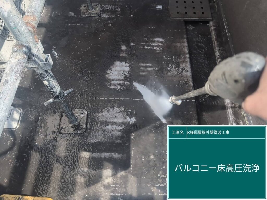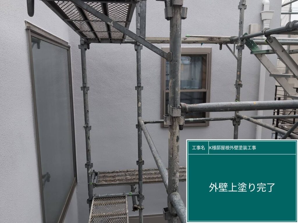K様のお家は、築18年で2回目の塗装となります。通気モルタル工法を採用した外壁で、洗浄(下地調整)後、下塗りを施し主材塗料にて中塗り・上塗りを行います。表層劣化が起こり、特に西面の壁は日当たりが良く、膨張収縮が起こり続けている状態でした。屋根ですが、シンプルでスマートな縦ラインが特徴なガルバリウム鋼板製の立平葺き屋根となります。外壁やコーキング箇所程劣化は進んでおりませんが、表層塗膜の劣化は起きております。ご提案としましたは、外壁屋根ともに断熱・遮熱・防音・消臭効果のあるガイナという塗料をご提案さえていただきます。こちらの塗料は、JAXA公認塗料で、特殊セラミックが塗膜を保護し、外壁材や屋根材の熱による膨張・収縮を抑制することで、建材の劣化を防いでくれます。バルコニーですがFRPが施されています。表層劣化が進んでいる状態です。浮ヶ所、クラック個所はなく、初めての防水工事ですので、防水層を保護する超耐ウレアコーティング工法のご提案をさせていただきます。また弊社一押しのモルドバスター2000を塗料の中に撹拌させることでカビやコケを寄せにくくする防菌材と美観性を底上げしてくれる仕上げ材として、弊社の取り扱っているクリスタルシーズンtgという光触媒コーティングのご提案もさせて頂きました。こちらは塗料仕上げ剤として最後の工程に外壁や付帯部、などお家全体に吹付けるコーティング材となります。