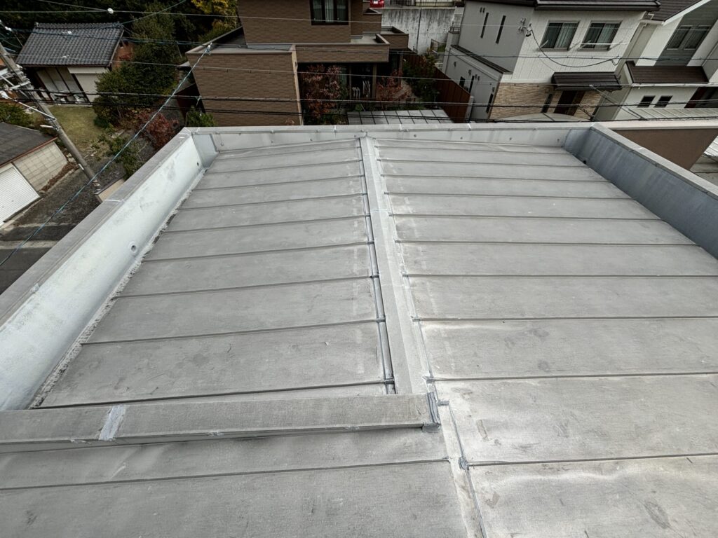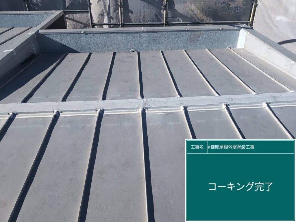 ガルバ鋼板製の屋根となります。表層塗膜の劣化が進んでいました。
