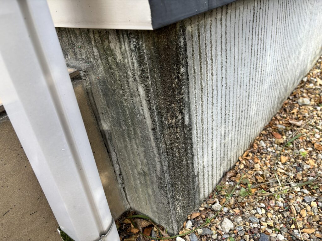 基礎部分は藻やカビの発生が目立ちました。通気性を重視した塗料で塗装します。