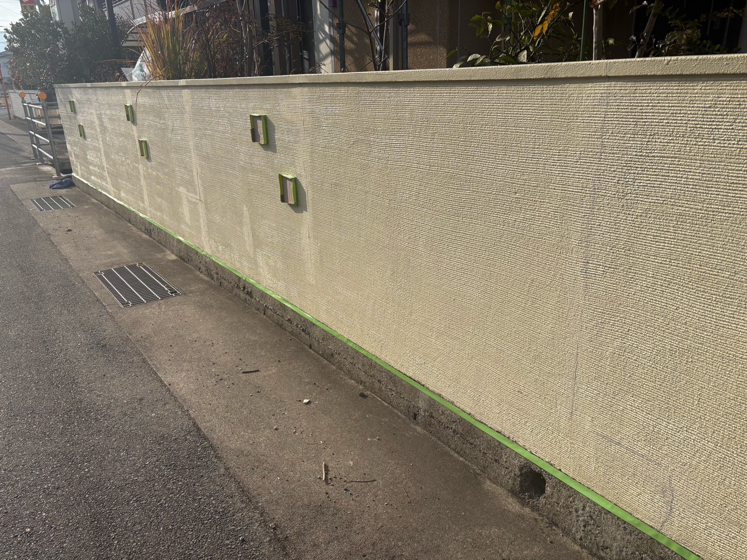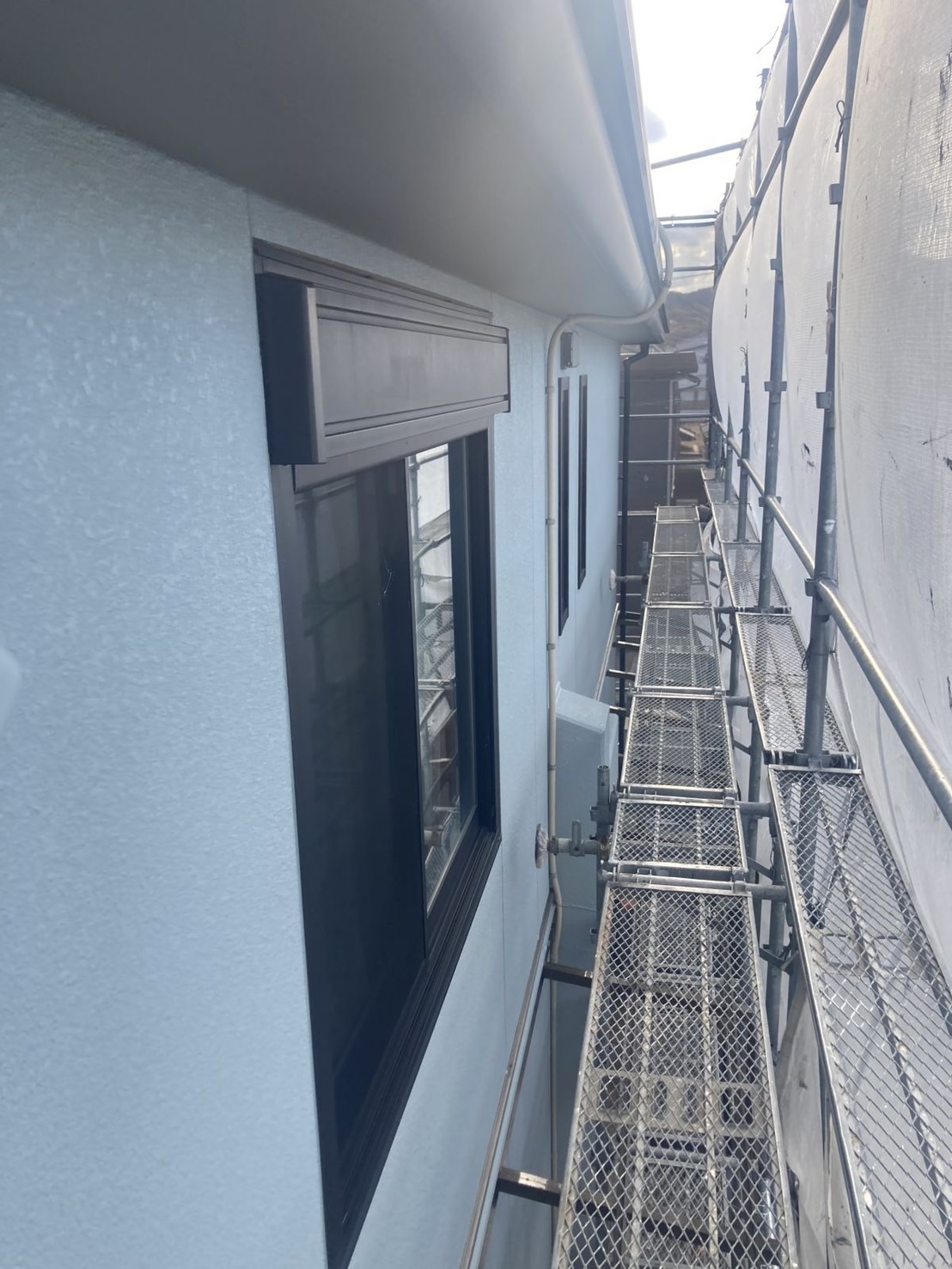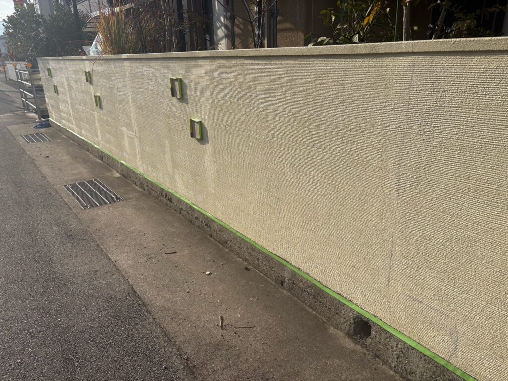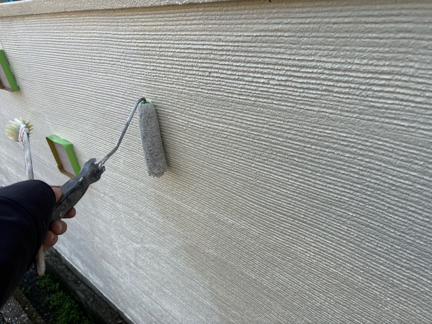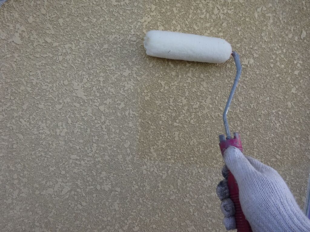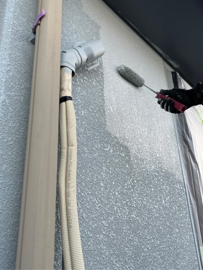 外壁はスタッコ外壁のため 現状の凹凸やシックな風合いを生かすためつや消し塗料。