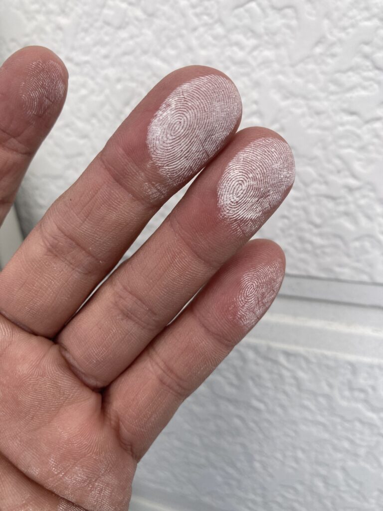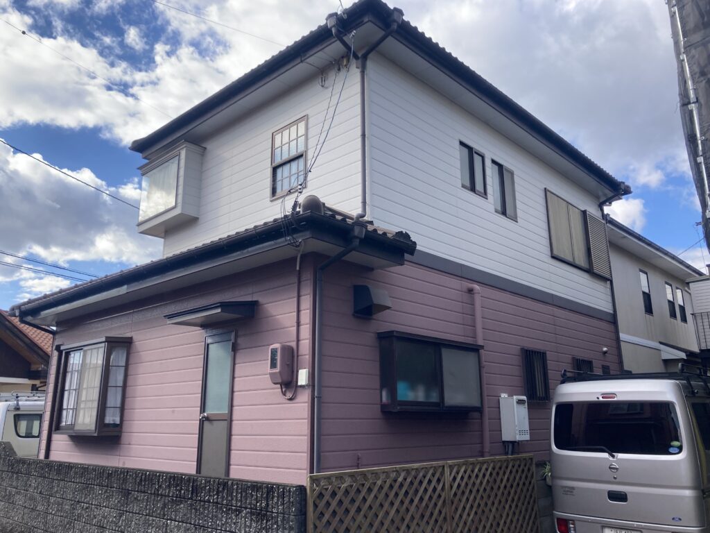 外壁材には経年劣化による、ヘアークラックやチョーキング現象が見られました。