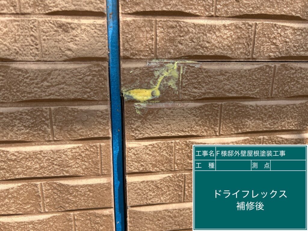 外壁のひび割れ部分をドライフレックスにて補修しました。