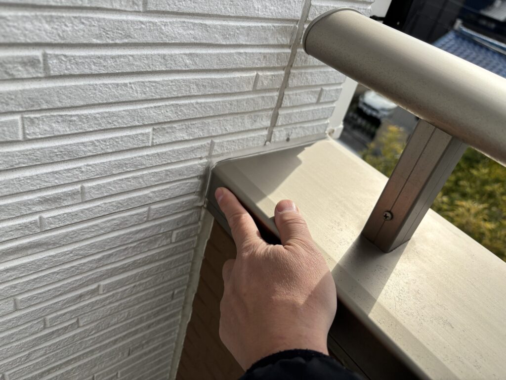 ベランダ壁と外壁の取り合い部のコーキングの劣化が目立ちました。