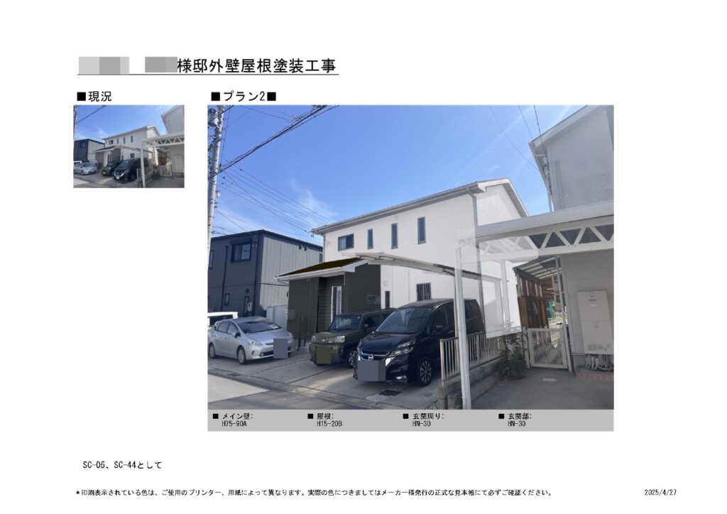 | 色番号 | ベース壁:SC-10(ニットコウN-85) アクセント壁 :VM509-C 屋根:SC-47(ニットコウN-20) |