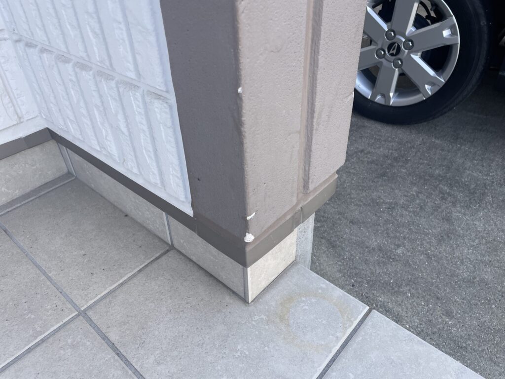 気になるところは、玄関回りの外壁にひび割れが入っているところと、目地コーキングのひび割れが気になります。