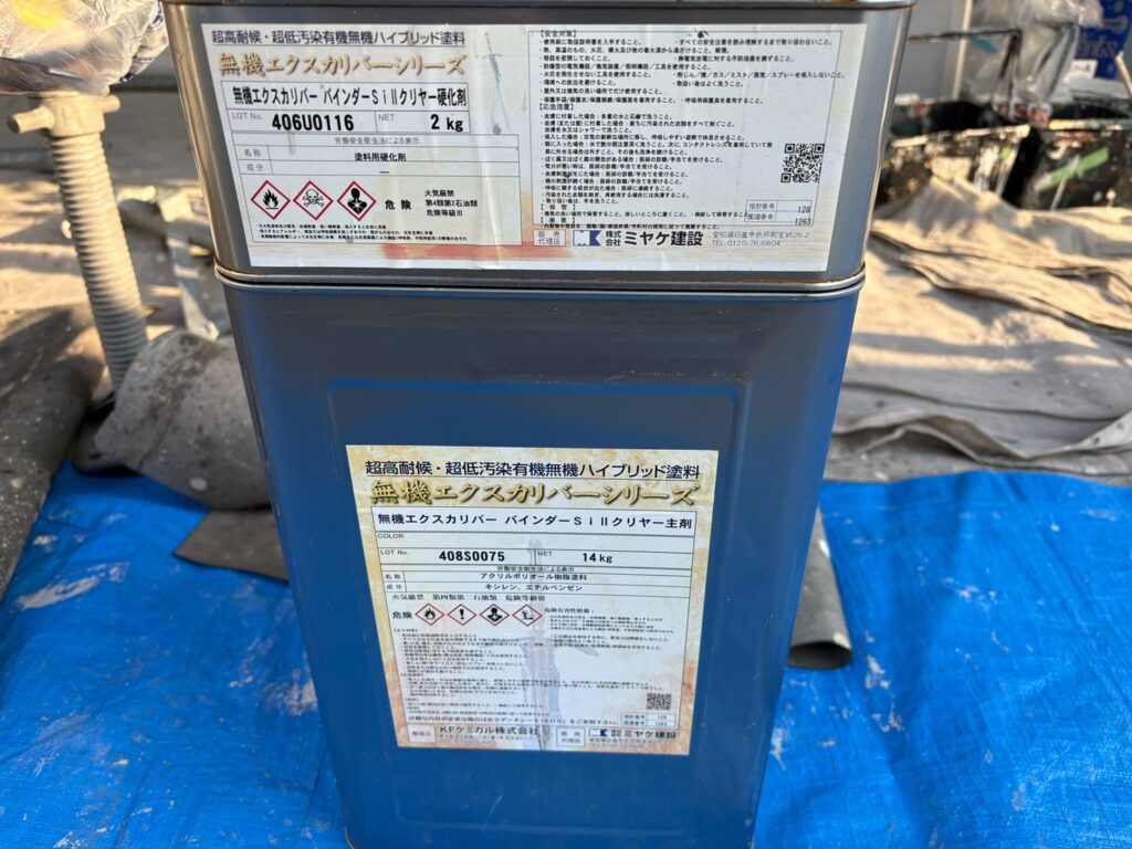 | 使用商材・建材 | 外壁 : 無機エクスカリバーAZ-W(2液型水性/バーテックス無機塗料/CPJ・~クリスタルペイントジャパン~) 屋根 : 無機エクスカリバーMZ-R(2液型弱溶剤/バーテックス無機塗料/CPJ・~クリスタルペイントジャパン~) 目地&開口部 : SRシールH100(超耐久・高耐候シーリング材/サンライズ) 付帯 : 4Fイージスガード(2液型弱溶剤/無機配合型4フッ化フッ素塗料/CPJ) 仕上げ : クリスタルシーズンtg(可視光応答型ハイブリッド光触媒プロテクトコーティング) |