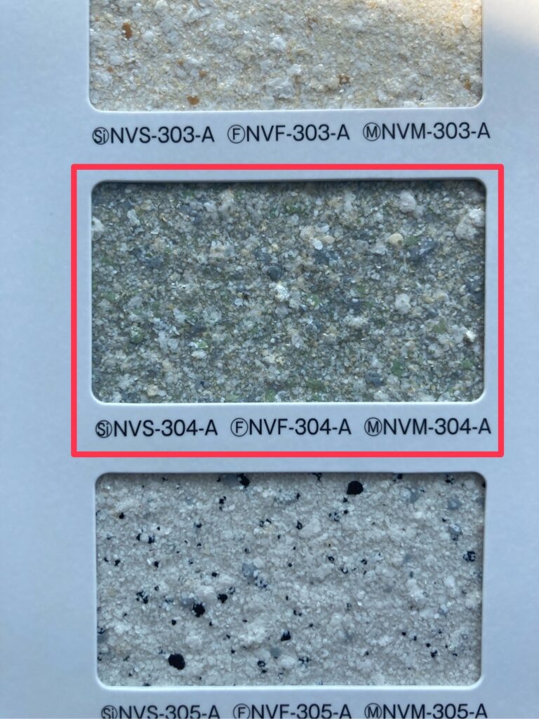多彩模様仕上げ塗料の中でも、ネオフレッシュティアラは特殊カラーフレーク(無機系マイカ)の配合により光沢があり立体的な塗膜となり、高級感と重厚感がでます。紫外線劣化が起こりにくく、汚れにくいため美しい仕上がりを長く保ちます。多彩模様仕上げの中では最高級品です。下塗りはローラー施工、仕上げは吹付けで模様をある程度均等に吹かなければならない、慣れていないと施工が難しい塗料でもあります。