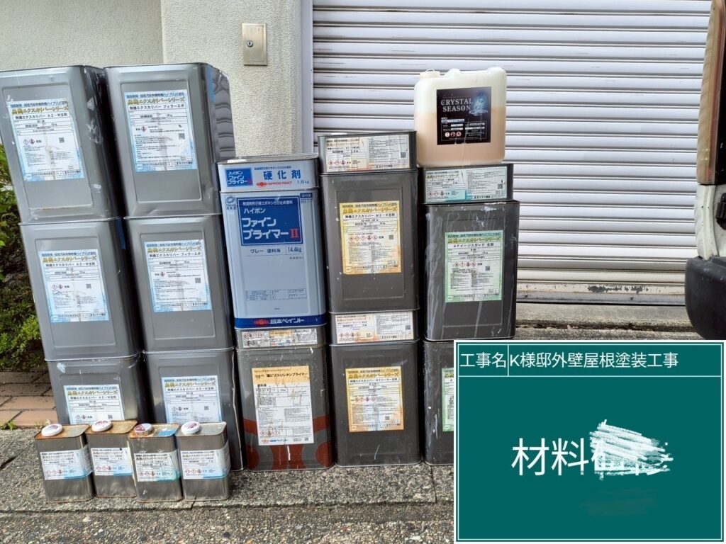 | 使用商材・建材 | 外壁 : 無機エクスカリバーAZ-W(2液型水性/バーテックス無機塗料/CPJ・~クリスタルペイントジャパン~) 屋根 : 無機エクスカリバーMZ-R(2液型弱溶剤/バーテックス無機塗料/CPJ・~クリスタルペイントジャパン~) 付帯 : 4Fイージスガード(2液型弱溶剤/無機配合型4フッ化フッ素塗料/CPJ・~クリスタルペイントジャパン~) 目地&開口部 : SRシールH100(超耐久・高耐候シーリング材/サンライズ) 仕上げ : クリスタルシーズンtg(可視光応答型ハイブリッド光触媒プロテクトコーティング) |
