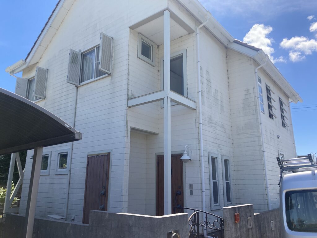 リシン吹付の外壁もあって、汚れが目立っておりました。