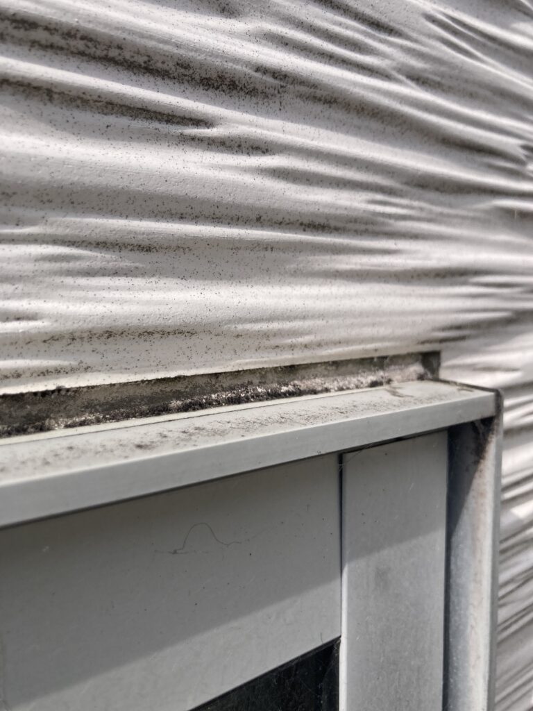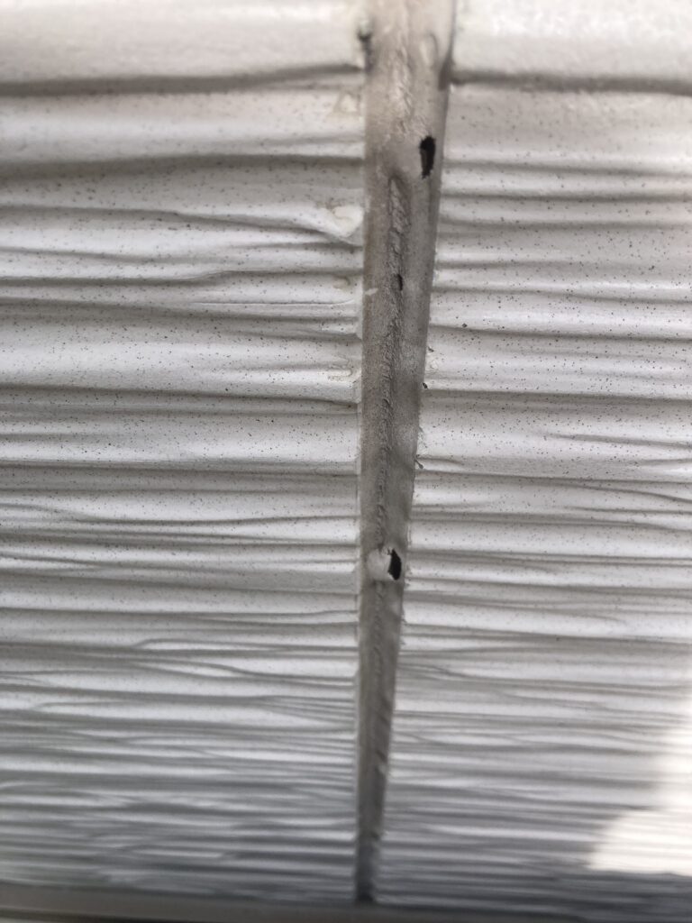 継ぎ目のコーキングも割れなど、紫外線を受けやすい箇所に見られました。