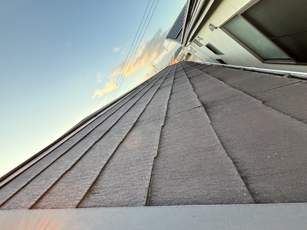 スレート瓦の屋根は表層塗膜は完全に劣化しています。