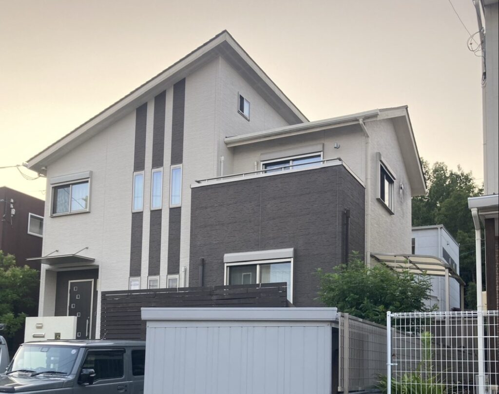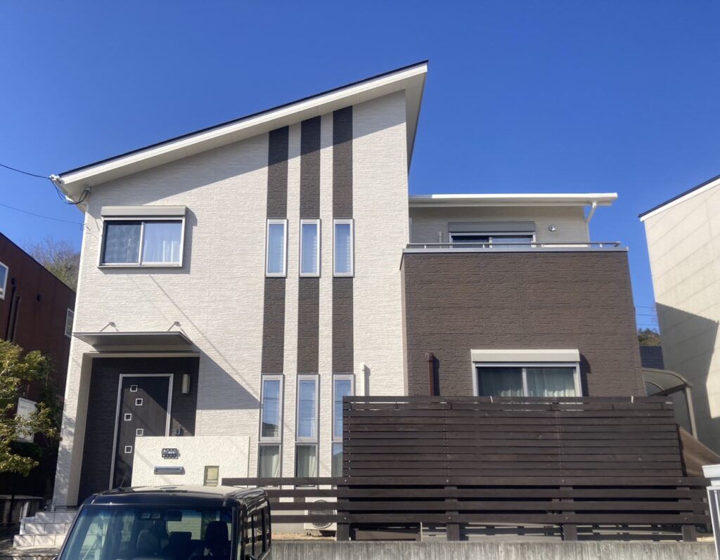 S様の外壁は高耐侯コーティングされた外壁材のため、密着を考慮して難付着サイディング対応塗料でご提案いたしました。